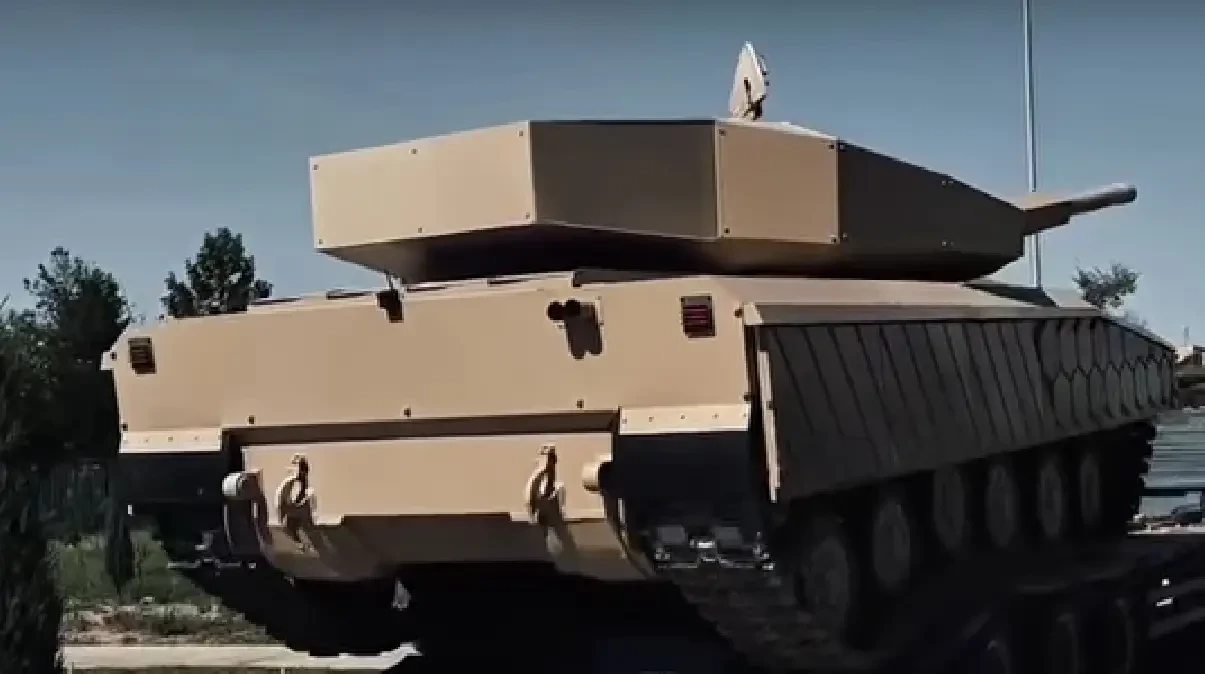 Интересной деталью стало удлинённое заднее отделение башни – вероятно, там размещена дополнительная электроника или система кондиционирования. Орудие также прикрыто кожухом, хотя его практическая польза, кроме защиты от осколков, неочевидна. Отсутствие курсового пулемёта НСВТ наводит на мысль о переходе на дистанционно управляемые модули, но подтверждений этому пока нет.