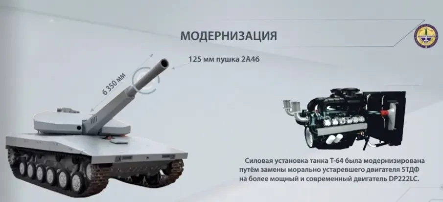 В свою очередь, «под капотом» у машины также произошли серьёзные изменения. Старый советский двигатель 5ТДФ заменили на южнокорейский дизель Doosan DP222LC мощностью 950 лошадиных сил. Это позволило сохранить подвижность при возросшей массе – танк весит 38,5 тонны и разгоняется до 50 км/ч.