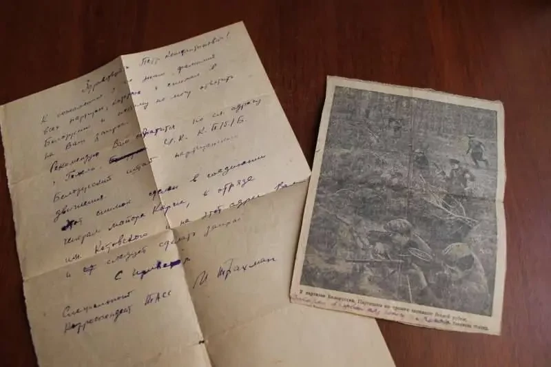 А потом от него пришло первое письмо. В нем он писал, что его эшелон движется на запад, где уже шли ожесточенные бои. Затем пришли еще три письма, причем последнее — из Новгорода-Волынского. А затем им принесли извещение о том, что боец Красной Армии Таратынов К. П. пропал без вести… А потом в 1942 году моя бабушка случайно увидела в газете фотографию из белорусского партизанского отряда. Один из тех, кто был на ней изображен, был очень похож на ее сына. Она тут же написала письмо автору статьи, но он ей ответил, что не помнит, конечно, все фамилии партизан, которых он там фотографировал, и дал совет обратиться непосредственно в партизанский отряд, и даже рассказал, как его именно его найти.