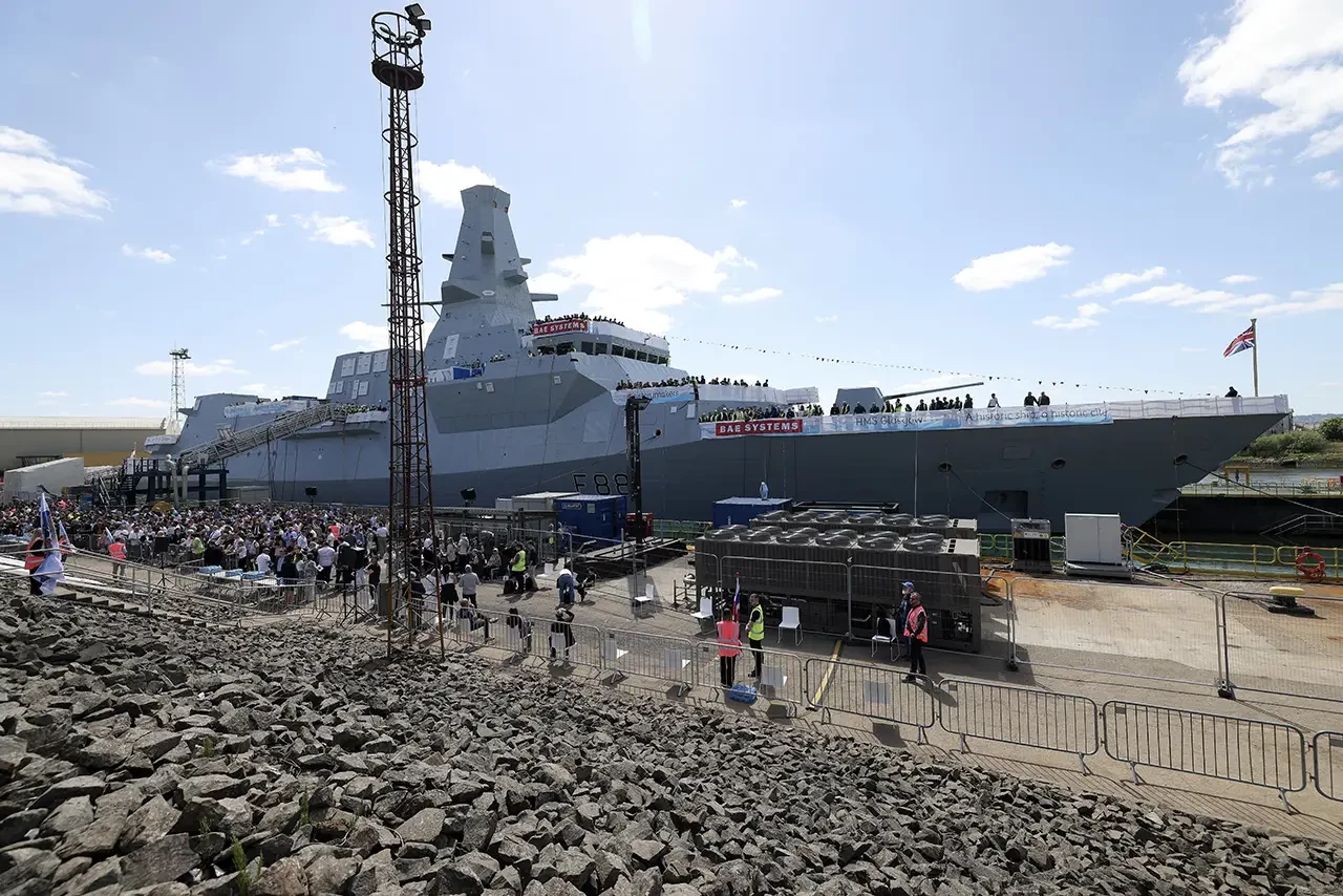 Фото 6. Первый фрегат типа 26, HMS Glasgow, во время церемонии спуска на воду в мае 2025 года.