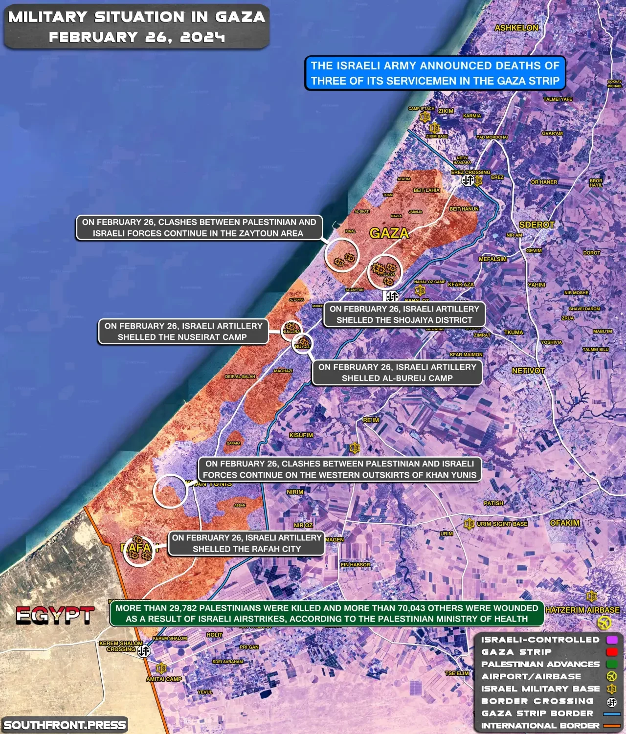 Несколько карт контролируемой израильтянами зоны в секторе Газа за февраль, июнь и ноябрь 2024 года. Из этих карт вполне очевидно, что израильтяне уже захватывали большую часть сектора Газа, а потом откатились назад. Это почему? От больших успехов?