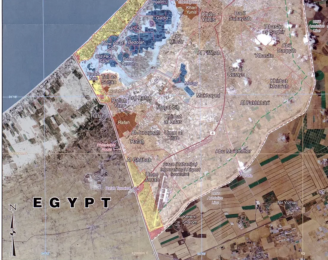 Вот если посмотреть на границу Египта и сектора Газы, то видно, что она плотно застроена находящейся на египетской стороне частью города Рафах