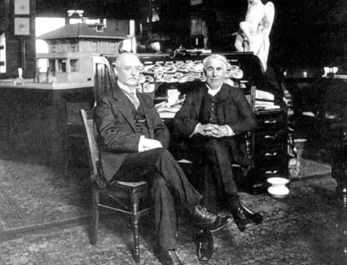 Как и куда ведёт человека судьба. Встретились два гения, Рудольф Дизель и Томас Эдисон. Снимок 1912 года, Дизель уйдёт из жизни через год и девять месяцев.