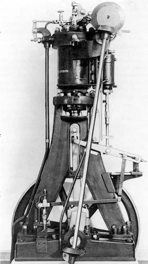 Именно на фирме Maschinenfabrik Aktiengesellschaft St. Georgen и были созданы небольшие одноцилиндровые дизельные двигатели мощностью 5 л.с., спроектированные Дизелем и его командой.