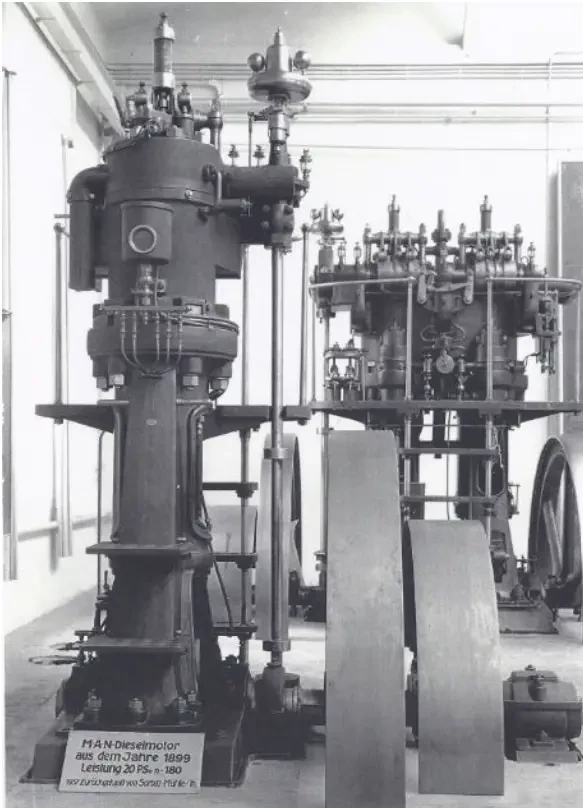 В 1893 году издательство Юлиуса Шпринглера издаёт книгу Дизеля: «Теория и конструкция рационального теплового двигателя в качестве замены паровых машин и известных сегодня двигателей внутреннего сгорания», которая заинтересовала Генриха фон Буца (Heinrich von Buz), генерального директора машиностроительного завода в Аугсбурге, предприятия, которое позже, в 1908 году, получило известное нам сегодня имя MAN AG (Maschinenfabrik Augsburg-Nürnberg AG).