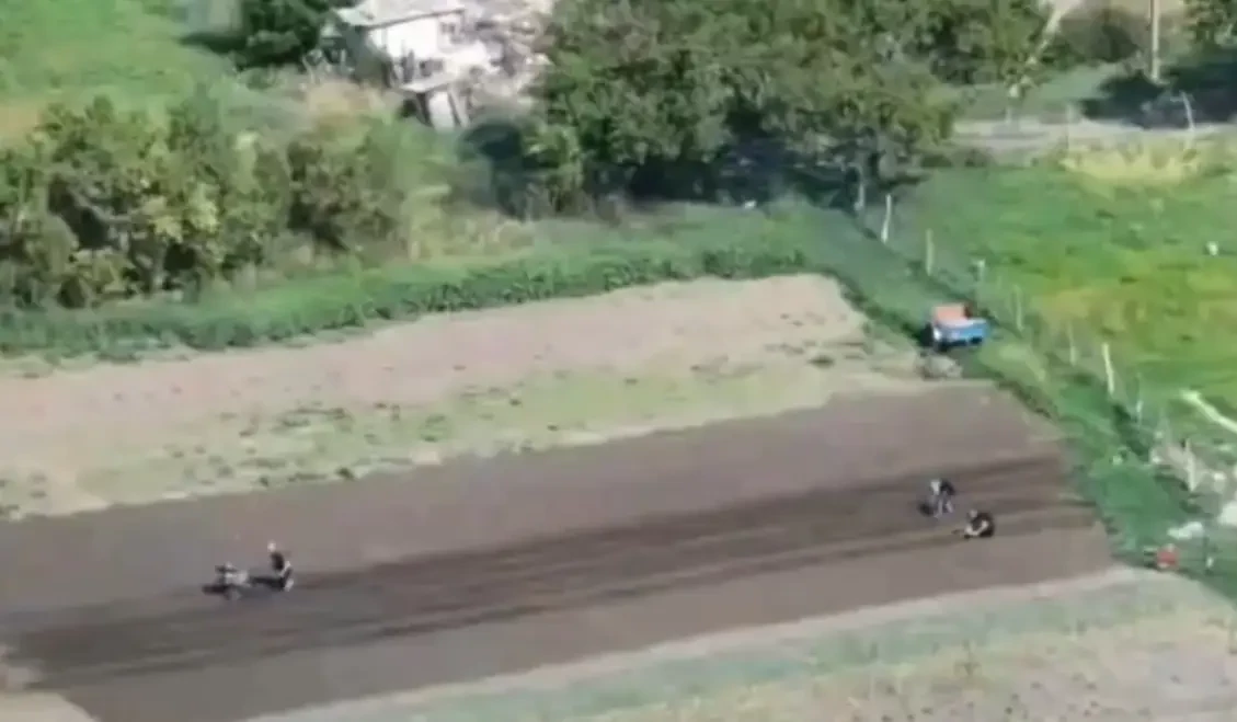 Кадры с дрона: жители недавно освобождённого села Алексеевка в ДНР возделывают поля в нескольких сотнях метров от линии фронта
