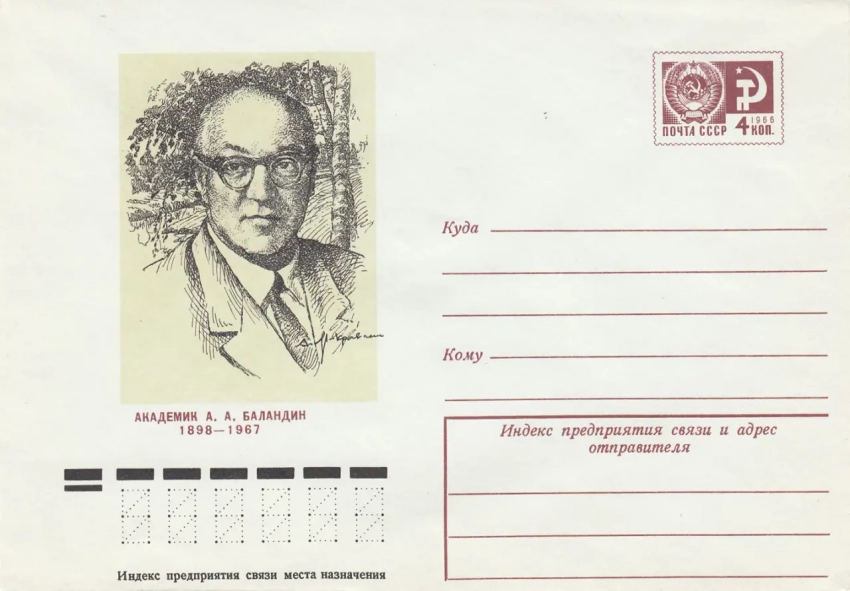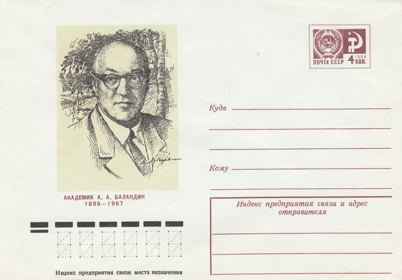 Конверт почтовый с портретом академика Баландина А.А.КККМ ВФ 8765/6.