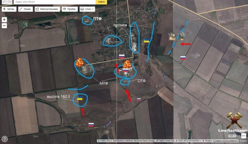На Запорожском направлении появилась геопривязка от ТГК "Сливочный каприз" ВС РФ вошли на южные окраины Малиновки.