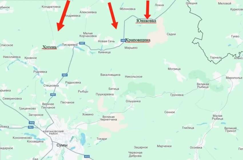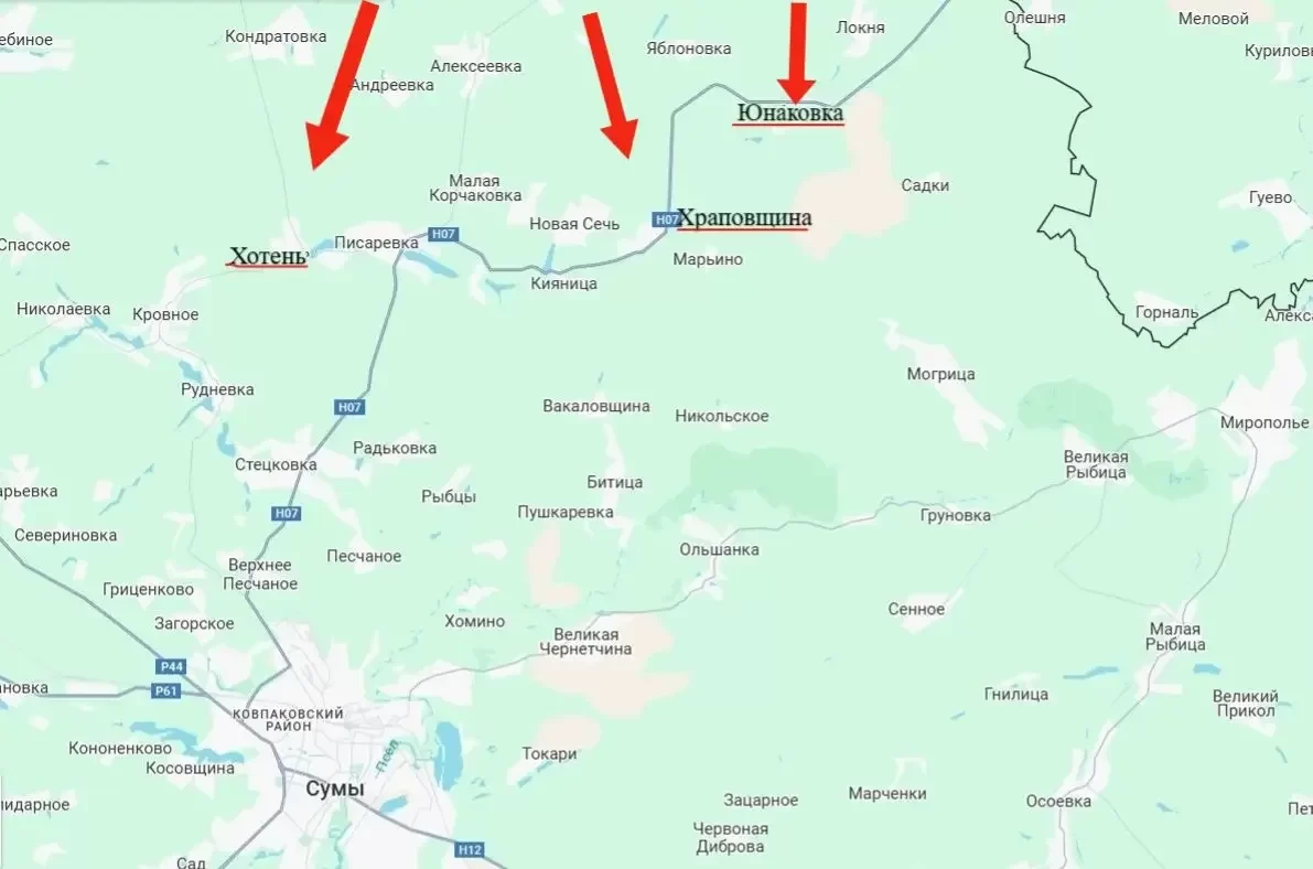 Кроме того, подразделения группировки войск «Север» нанесли поражение скоплениям живой силы и техники ВСУ в районах населенных пунктов Хотень и Храповщина. ВС России продвигаются в направлении последнего, находящегося в 16-17 километрах от областного центра - города Сумы.