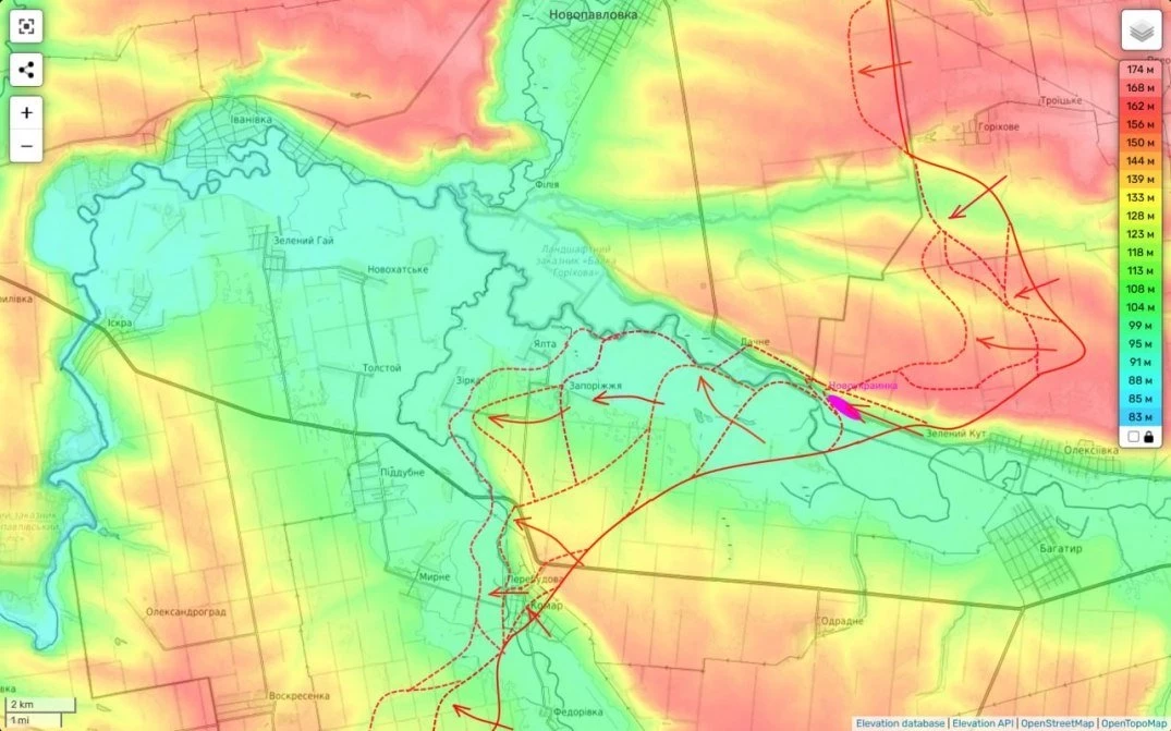 "И ещё далее на север, к Звезде и Ялте. За которые уже идут бои", - отмечает Юрий Подоляка в своём Telegram-канале.