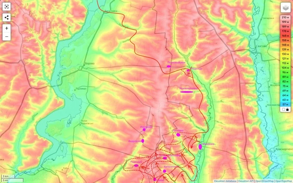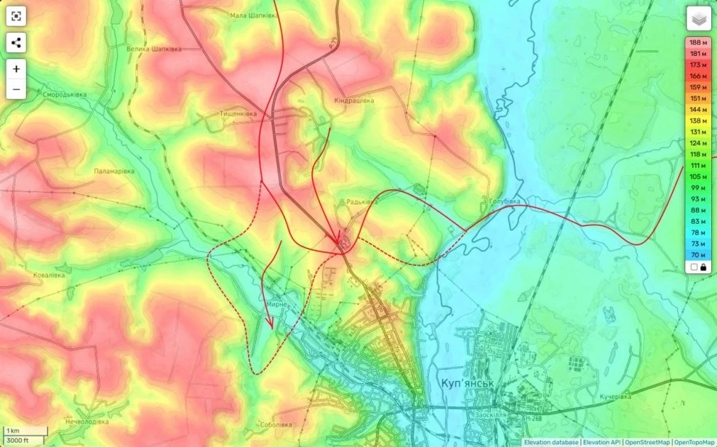 В частности, по данным Юрия Подоляки, российские бойцы продолжают охватывать Купянск с севера. Накануне ВС России заняли важный холм между населёнными пунктами Голубовка и Радиковка.