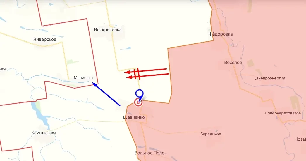 Одним из перспективных направлений является юго-западное от Великой Новоселки. Здесь, по данным российских околовоенных пабликов со ссылкой на источники с фронта, намечается очередной выход наших бойцов к границе с Днепропетровской областью на участке Шевченко-Малиевка.