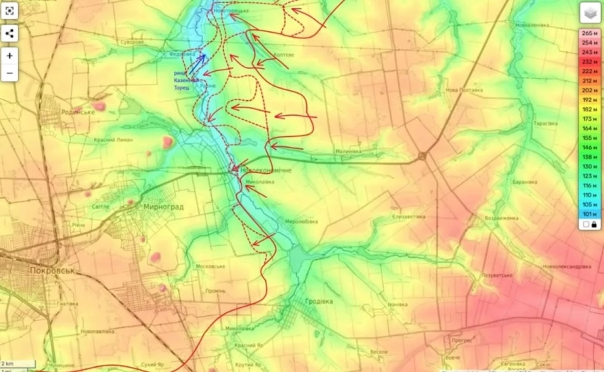 "Таким образом прорыв уже на западном берегу реки Казённый Торец достиг довольно серьёзных размеров. Это стало возможным благодаря применению нашими войсками новой тактики по уничтожению опорных пунктов противника", - уточнил блогер.