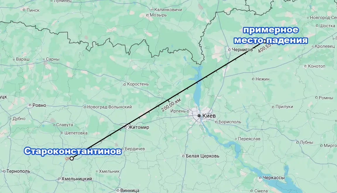 Опять же, с учётом оперативности задачи, круг аэродромов, с которых мог подниматься F-16, всё же сужается. Более подходящими для выполнения указанной задачи над Черниговской областью являются аэродромы Киевской, Житомирской и Хмельницкой области. Один из таких вариантов – аэродром Староконстантинов, что в 400 км от места ликвидации F-16 нашими ребятами.
