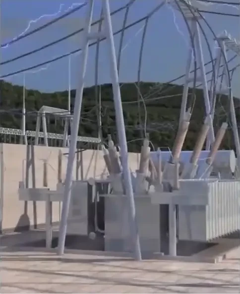 Цилиндрические суббоеприпасы упали на электрическую подстанцию, отпрыгнули от поверхности и подорвались в воздухе. При этом высвободились некие мелкие поражающие элементы. Они тут же вызвали короткое замыкание электрических систем подстанции, вывели её из строя и нанесли некий урон условному противнику.