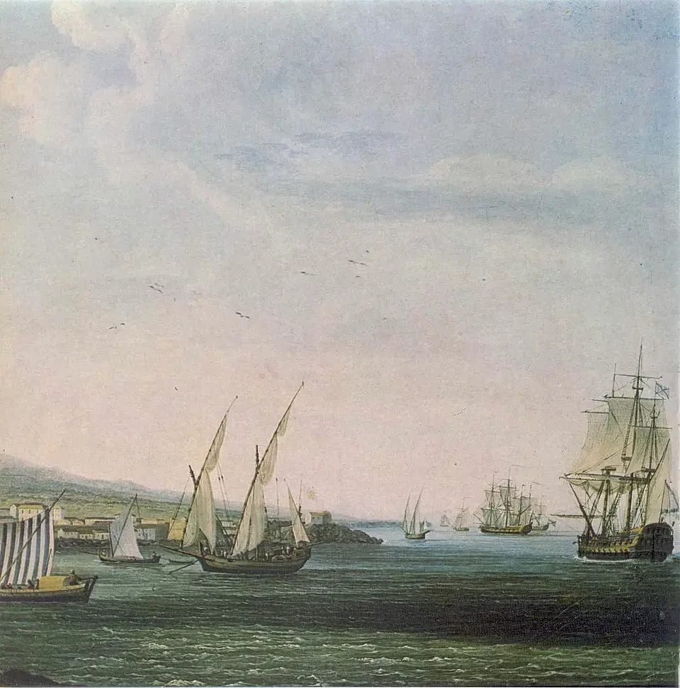 9 (29) мая 1770 года эскадра Эльфинстона прибыла к берегам Мореи. Высадив десант, эскадра двинулась на поиски флота противника, о котором узнали от греков.