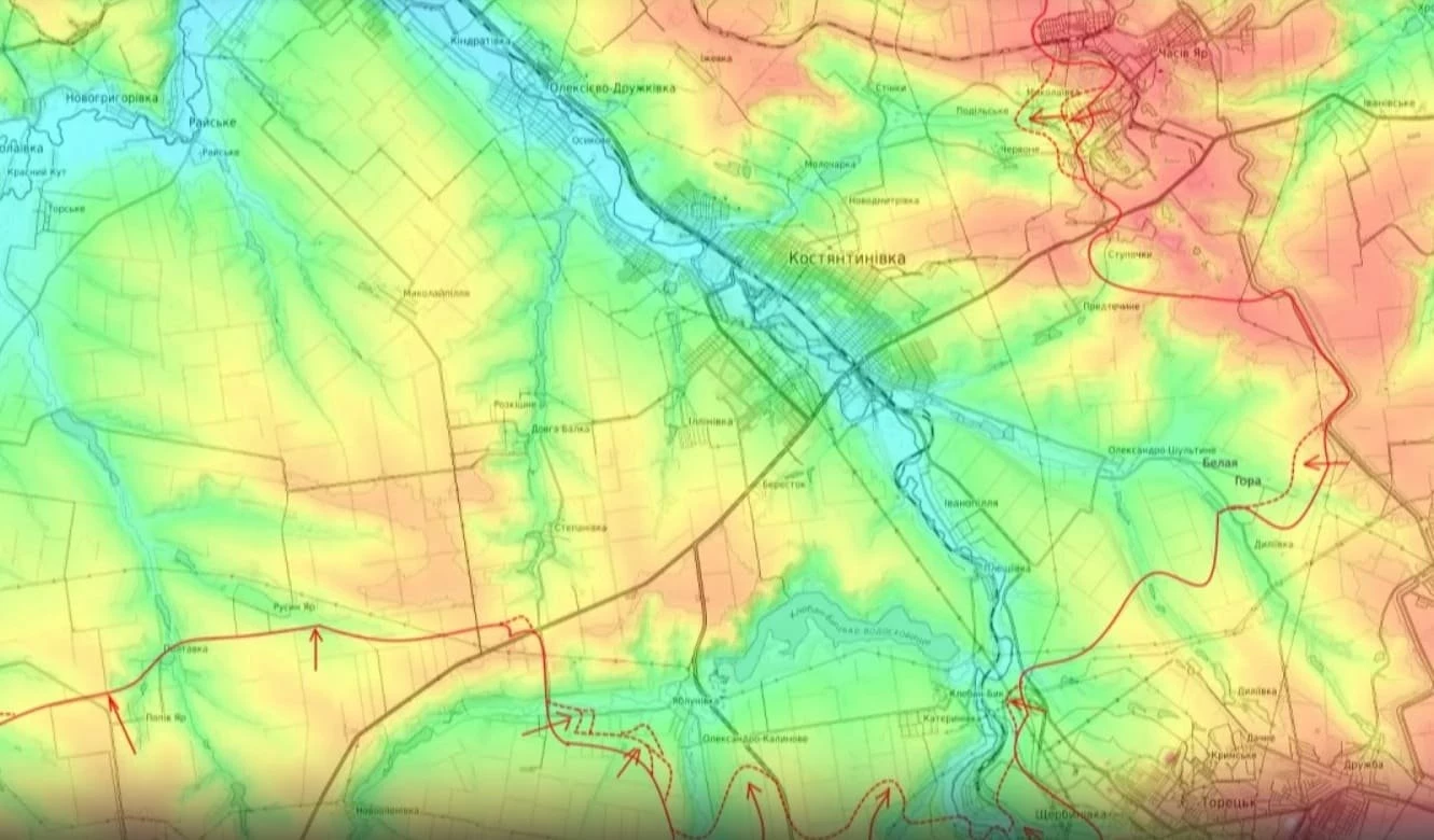 На Константиновском направлении украинские войска, как и на Покровском, продолжают испытывать колоссальные проблемы на фронте из-за отсутствия достаточного количества резервов. Российские войска с помощью постоянного давления на рубеж Яблуновка - Александро-Калиново даёт результат, так как это последняя дорога, благодаря которой противник ещё пытался и имел возможность снабжать населённые пункты Петровка и Щербиновку.
