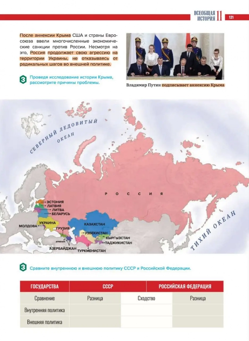 Однако, как отмечает Дюков, на имперском и советском периодах авторы учебников не останавливаются, активно добавляя в изданные в последние годы учебники критику современной России. Передовиком в этом деле является Керим Шукюров, однозначно утверждавший в пособии для 11 класса (Баку, 2023) об «аннексии» Крымского полуострова в 2014 году и продолжении других «агрессивных и радикальных шагов» РФ в отношении Украины. Действительно, в данном учебнике есть такая цитата: