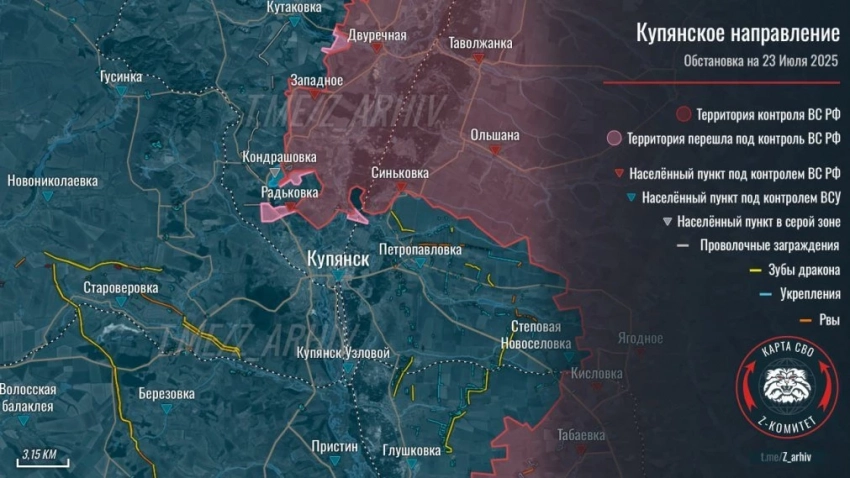 Карта боевых действий на Украине. Обстановка в зоне СВО на 24.07.2025