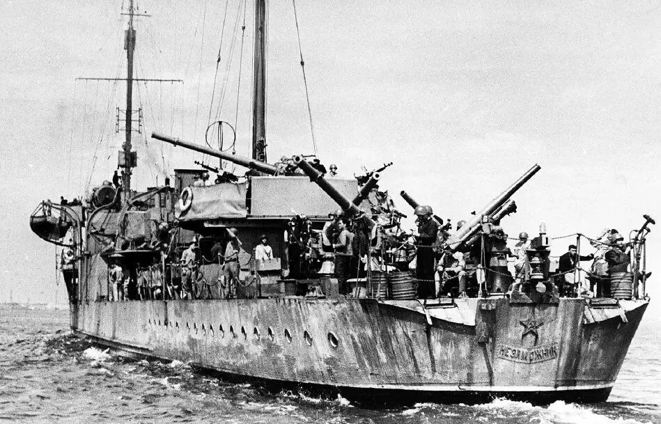 102-мм пушка на корме «новика» «Незаможник», бывшего «Занте»