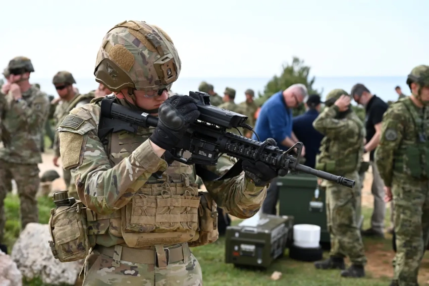 Американский солдат в тактических перчатках с защитой костяшек. Фото Минобороны США