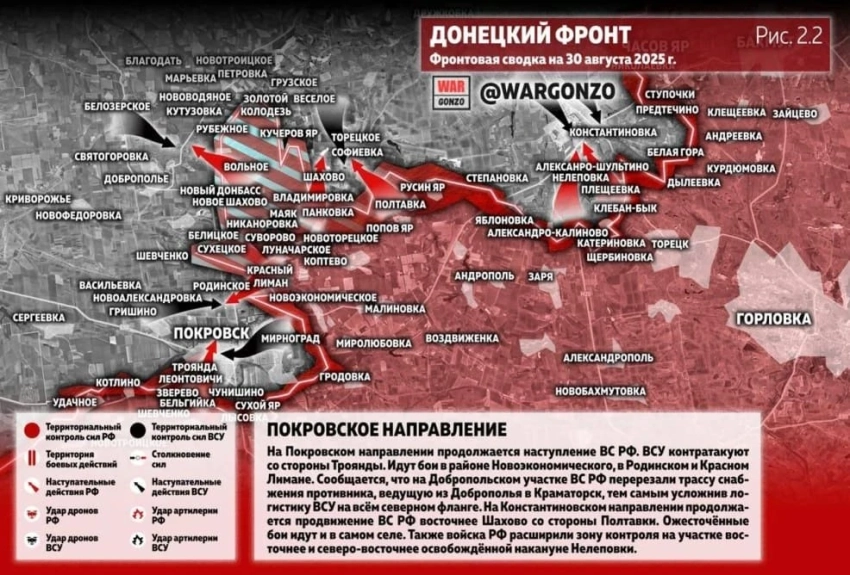 ВС РФ ведут бои в районе Новоэкономического на Покровском направлении: свежие данные от 30.08.2025