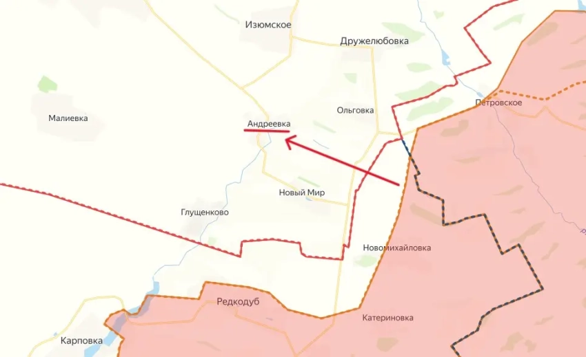 Поступает информация о существенном продвижении подразделений ВС России в направлении Оскольского водохранилища. По некоторым данным, им уже удалось освободить Андреевку, закрепляясь на занятых позициях. Это создает угрозу группировке противника, действующей в районе границы Харьковской области и ДНР.