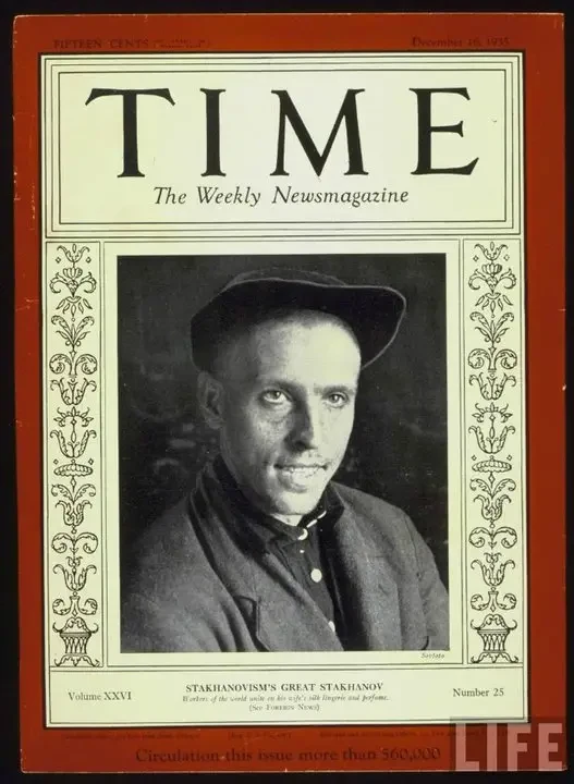 Алексей Стаханов. Фото на обложке еженедельника Time, 16 декабря 1935 года