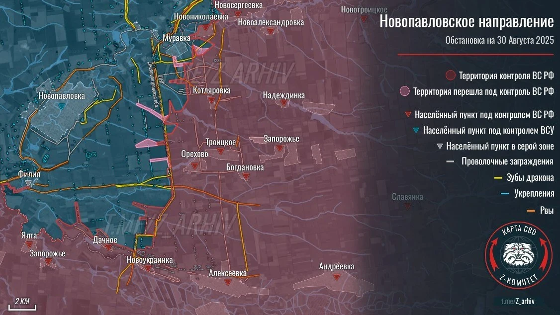 В зоне СВО продолжается мощное наступление российских войск. Наш сайт N4k предлагает ознакомиться с последними новостями из зоны проведения СВО, а также публикует свежую карту боевых действий, актуальную на сегодняшний день, 31.08.2025.