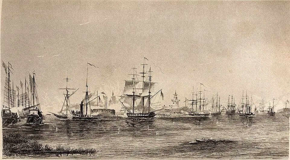 В общем, в ответ на взбрык императора англичане взяли в ходе «Второго сражения при Чуенпи» эти самые форты Чуенпи, прикрывавшие речной путь к Гуанчжоу (противостоять английской корабельной артиллерии устаревшие китайские пушки не смогли), и пошли на форт Хумэнь. Даогуан тут же объявил Великобритании войну и двинул войска в провинцию Гуандун. Но Цишань, ведший переговоры с Эллиотом, решил посидеть на двух стульях: он, с одной стороны, подписал «Чуаньбийскую конвенцию», в которой согласился на все требования англичан (включая передачу Гонконга, над которым просвещённые мореплаватели тут же подняли свой флаг), с другой, императору хитрый чиновник соврал, ничего не сказав об уплате денег и передаче острова. Когда правда вылезла наружу, Даогуан приказал Цишаня арестовать, а конвенция потеряла силу.