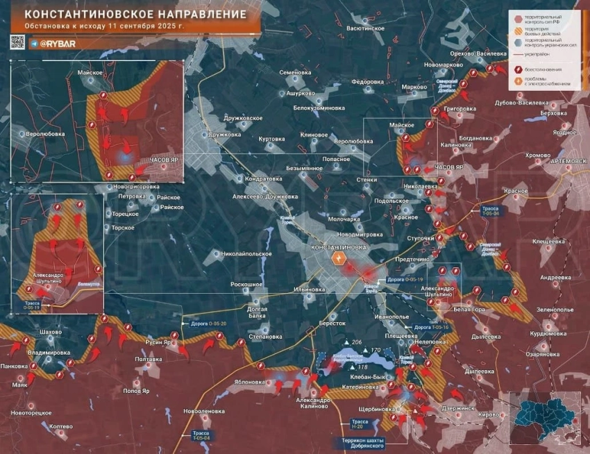 ▪️ На Константиновском направлении севернее Полтавки и Русин Яра продолжается движение в обход Шахово в сторону Софиевки. Севернее Торецка идут бои в районе Плещеевки и Нелеповки. Сообщают о боях на территории Иванополья.
