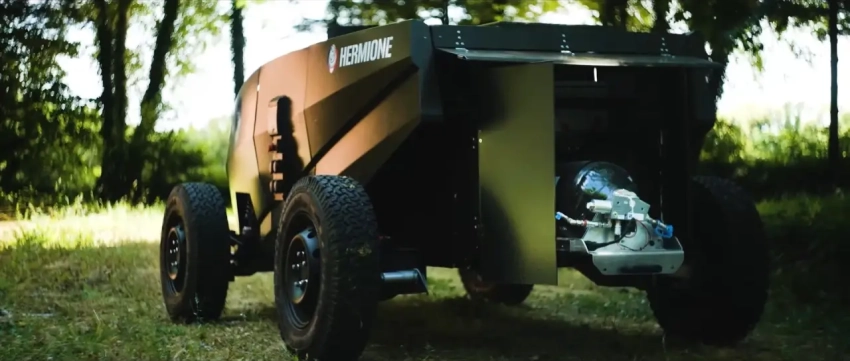 Во Франции, как и в других странах, ведётся разработка перспективных наземных робототехнических платформ, способных нести разные нагрузки. В начале сентября французская компания H2X-Defense представила свою новую разработку в этой области — комплекс Hermione. Четырёхколёсный робот построен с применением ряда современных технологий, которые позволяют нарастить технические и эксплуатационные характеристики.