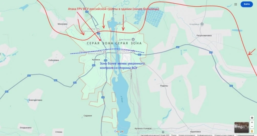 Сегодня в сети активно распространяется сообщение, из которого следует, что якобы контроль ВСУ над городом практически утрачен и что нашим штурмовым группам остаётся лишь «добить остатки противника». Однако более внимательный анализ показывает, что это не совсем так, сообщает Подоляка.