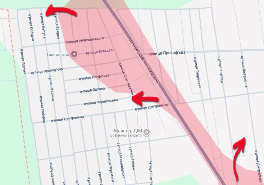 Примерное развитие событие на фрагменте украинской версии карты Покровска: