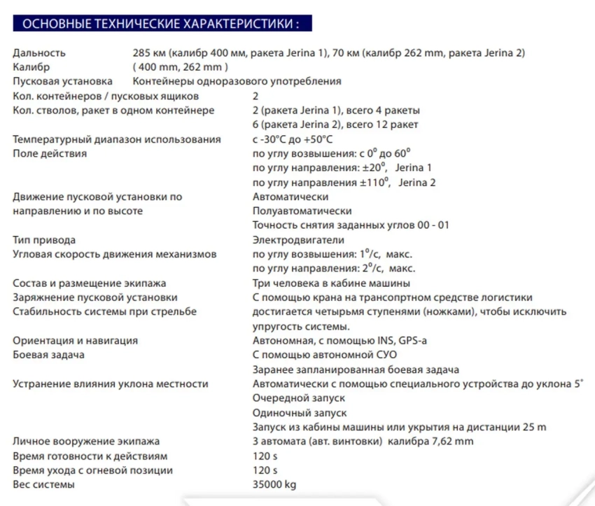 В числе местных образцов техники было представлено новое изделие – тяжёлая ракетная система Sumadija. Оперативно-тактический комплекс, разработанный компанией Yugoimport SDPR, представляет собой мобильную модульную пусковую установку большой дальности массой 35 тонн, предназначенную для поражения стратегически важных целей в глубоком тылу противника.