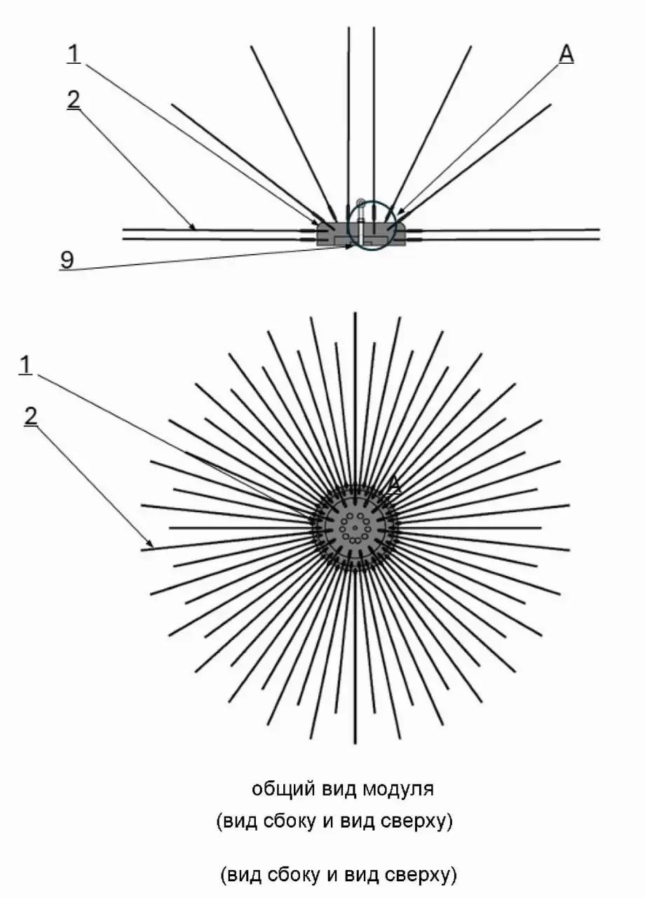 «Образованная лучеобразная полусферическая форма защитного устройства обеспечивает попадание пик в движущиеся лопасти дрона даже при оснащении пропеллеров защитными кожухами. Жесткость пик является достаточной, чтобы возникло разрушение или повреждение лопастей пропеллеров, что приводит к сбою траектории движения дрона и его детонации на расстоянии от защищаемой поверхности или корпуса транспортного средства».