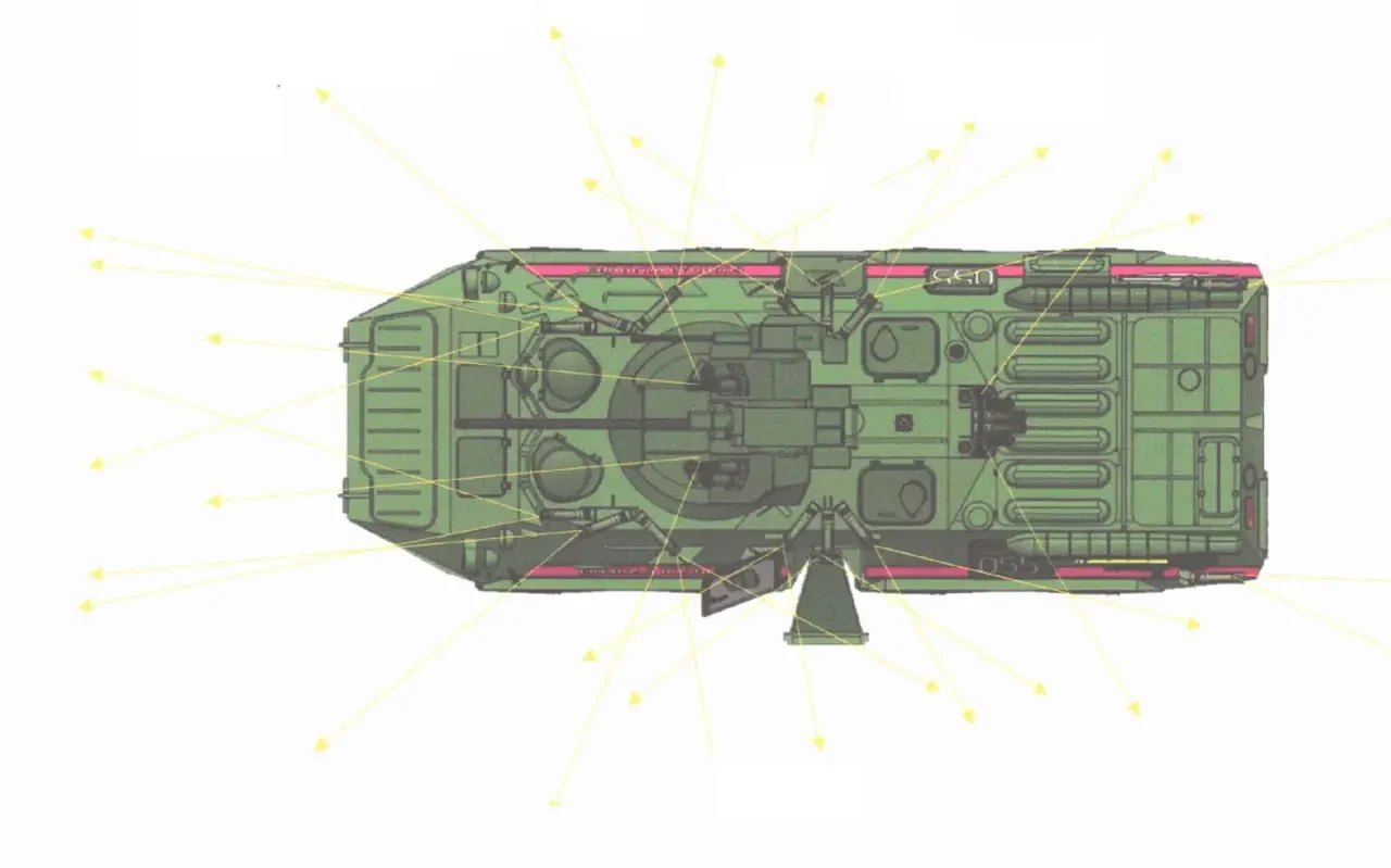 При обнаружении в радиусе действия радиолокационной системы малогабаритного объекта на дисплее вычислительного устройства отображаются характеристики его движения: расстояние, темп перемещения, уровень высоты, азимут направления и прогнозируемый маршрут с учетом вариаций этих показателей. Кроме того, на мониторе вычислительного устройства обозначены области оповещения о возможной угрозе, разделенные на сегменты, — по мере приближения объекта к танку или иной технике сигналы для оператора становятся все более настойчивыми, побуждая к принятию мер по нейтрализации.