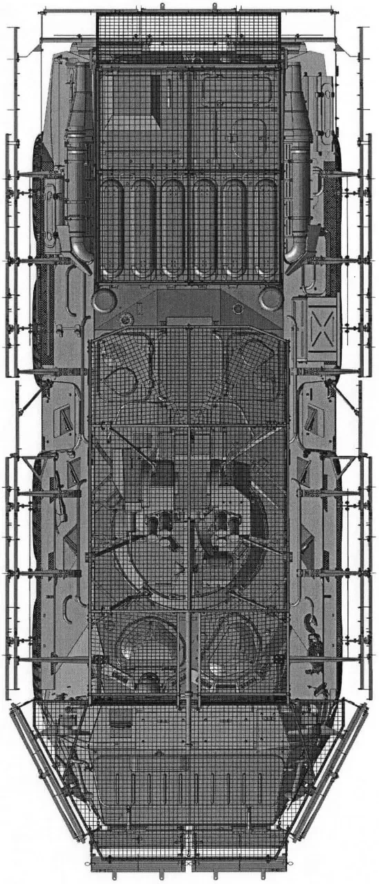 Настоящей классикой должно стать на фронте круговое обрешечивание легкобронированной техники. Причем делать это необходимо не в полевых условиях, а на заводах-изготовителях. Например, как предлагают в своих патентах инженеры Арзамасского машиностроительного завода и Военно-инженерного центра. «Тигру» такая шкурка точно идет.