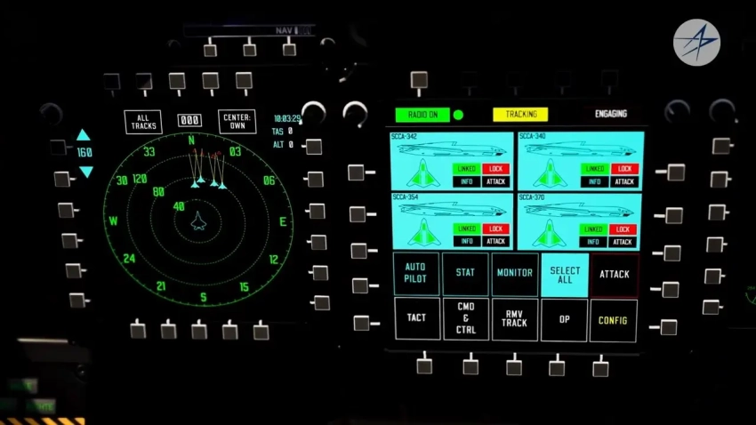 Интерфейс системы управления «роем» на приборной доске истребителя-ведущего