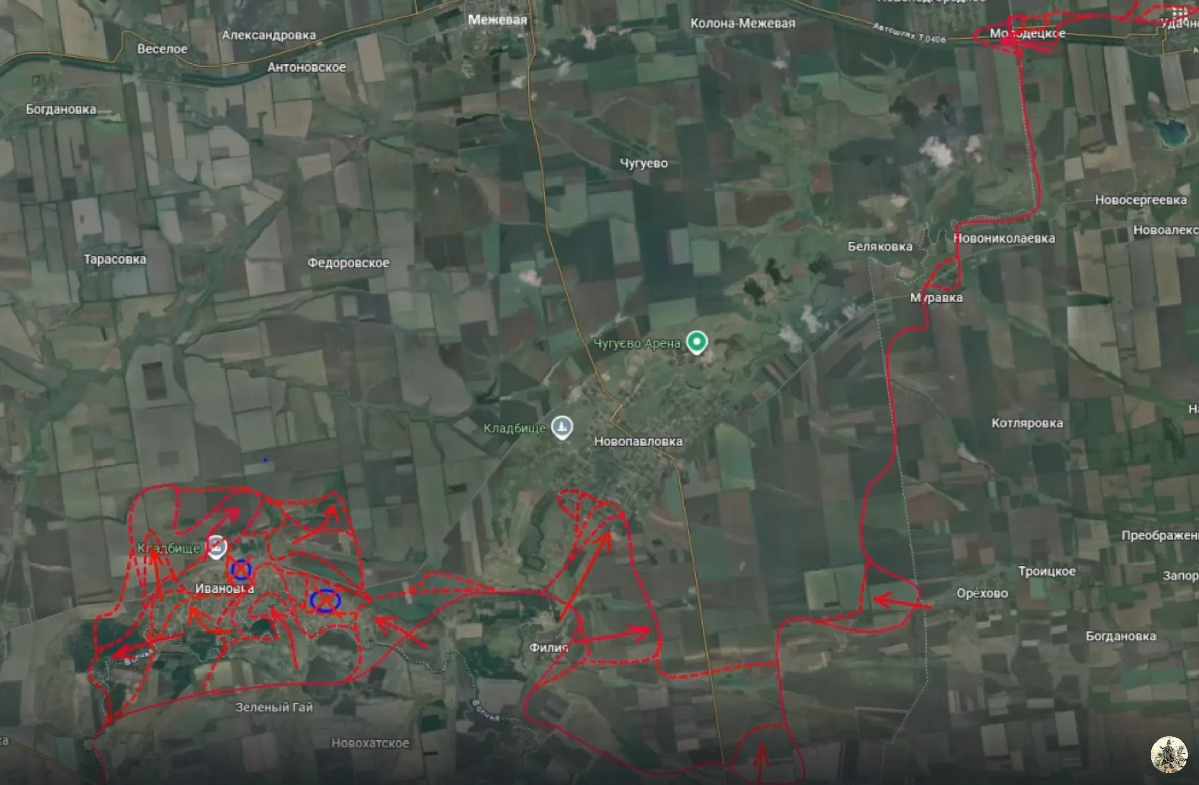 Параллельно с формированием «котла», группировка «Центр» продолжает «прогрызать» эшелонированную оборону ВСУ в районе Ивановки и Новопавловки, медленно, но верно продвигаясь вперед. Также идут бои у Молодецкого. Опираясь на занятые ранее Шахтоуправление «Покровское» и обогатительную фабрику, ВС РФ обеспечили себе левый фланг и начали «котловое движение» на Гришино.