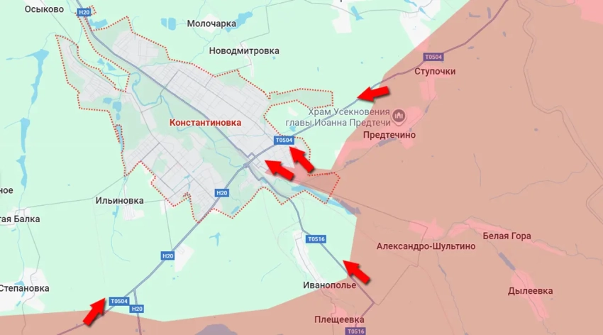 Сегодня российские войска, преодолев ещё около 700 м жилой застройки, прошли практически всю улицу Александра Островского. Бои идут в 400 м от крупной и основной транспортной развязки города, близ которой располагается константиновская металлобаза, территория которой активно используется ВСУ.