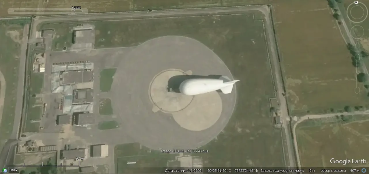 Спутниковый снимок Google Earth: аэростатный радиолокационный пост в окрестностях города Барнала в штате Пенджаб