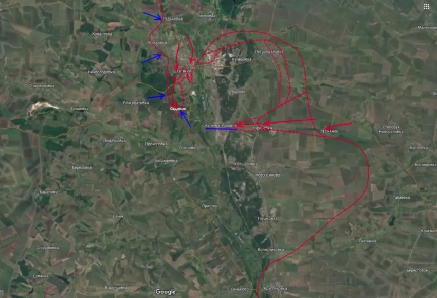 Вторая ключевая точка фронта - Купянское направление. Здесь противник атакует уже третьи сутки. Вчера вечером и сегодня ночью последовала очень мощная атака сразу с трех сторон: с юга на Садовое, а также на Московку и Радьковку.
