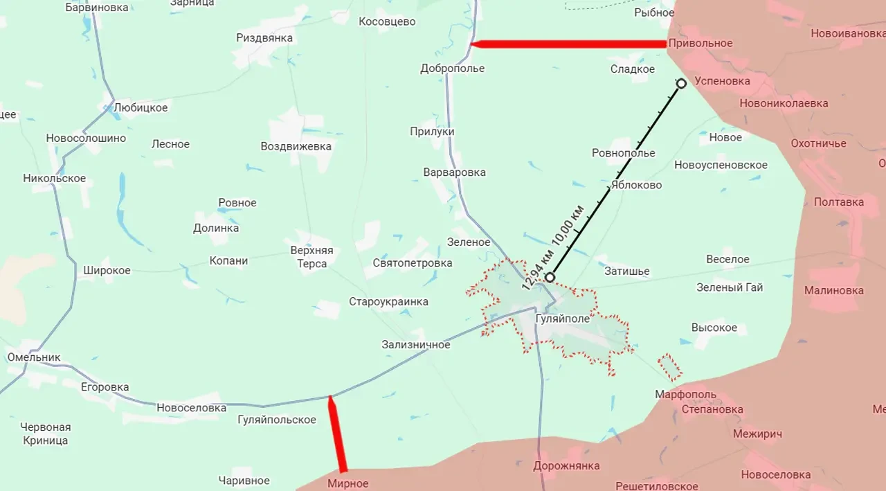После освобождения российской армией достаточно крупного запорожского села Успеновка находят своё подтверждения предположения военных экспертов о том, что конечной целью этой локальной операции является Гуляйполе. На данный момент расстояние до этого города от новых позиций ВС РФ к северо-востоку от него не превышает 13 км. Это притом, что с юга и востока значительно меньше.