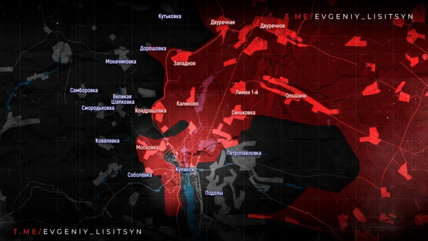На Купянском участке фронта ВС РФ продвигаются в Купянске. Войска РФ продвигаются в промзоне севернее трассы Купянск - Кременная.