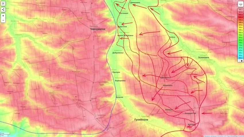 Критическая ситуация для ВСУ складывается в Гуляйполе. Российские войска зацепились за северные и восточные окраины города. Несмотря на контратаки противника, конфигурация фронта свидетельствует о том, что Гуляйполе обречено: основные укрепления ВСУ расположены западнее, а с охваченными флангами долго удерживать город невозможно.