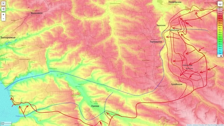 На южном участке Запорожского фронта - Степногорск, Приморское и Орехов - продолжается, как говорит аналитик, «медленное и ползучее» наступление.