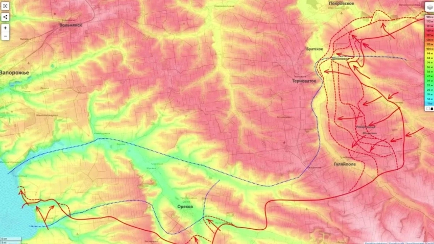 Не менее напряженная ситуация складывается на южном участке Запорожского фронта (линия Степногорск - Приморское - Орехов). Здесь российские войска применяют иную тактику, которую Юрий Подоляка охарактеризовал как «медленное и ползучее» наступление.