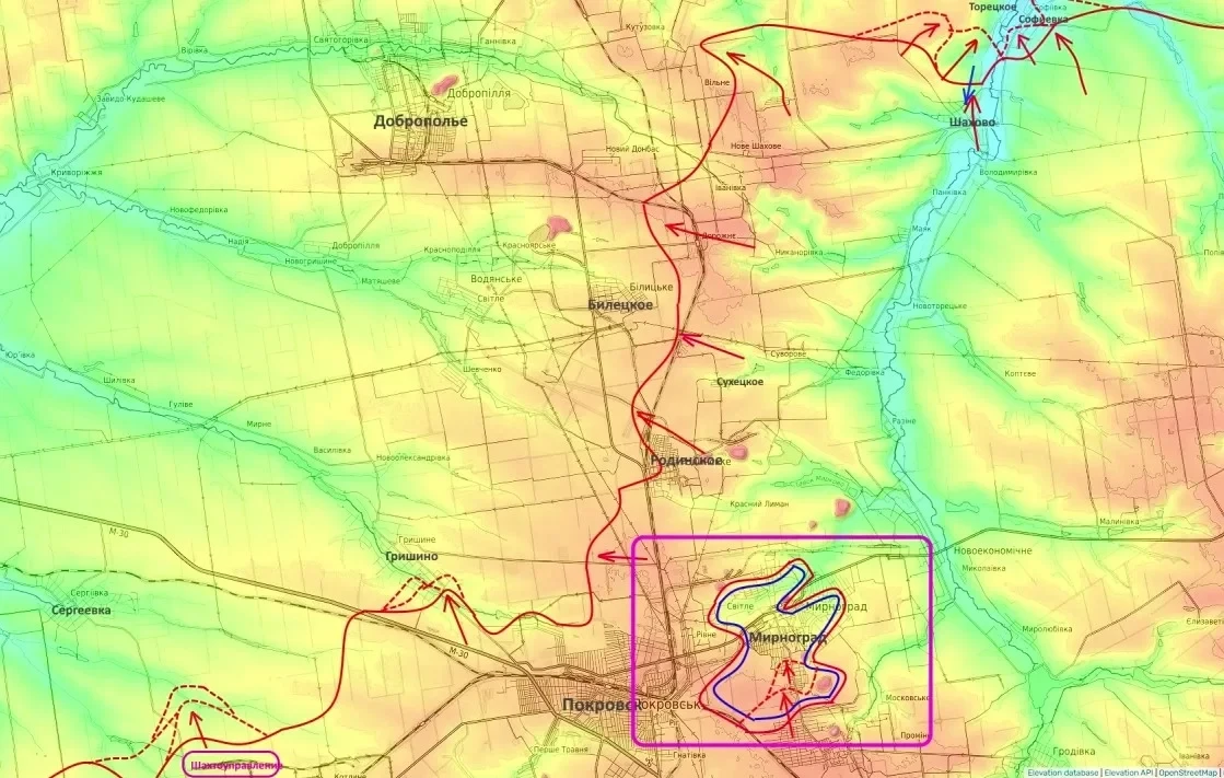 Ситуация в Мирнограде близка к катастрофической для Киева. Подразделения 51-й армии РФ сжимают кольцо окружения. Бои идут в центральной части города. В северной части Мирнограда в "котле" зажато до 1000 военнослужащих ВСУ. У них отсутствует возможность эвакуации раненых и подвоза боеприпасов, что ведет к неоправданно высоким потерям. Ликвидация этой группировки - вопрос ближайшего времени.