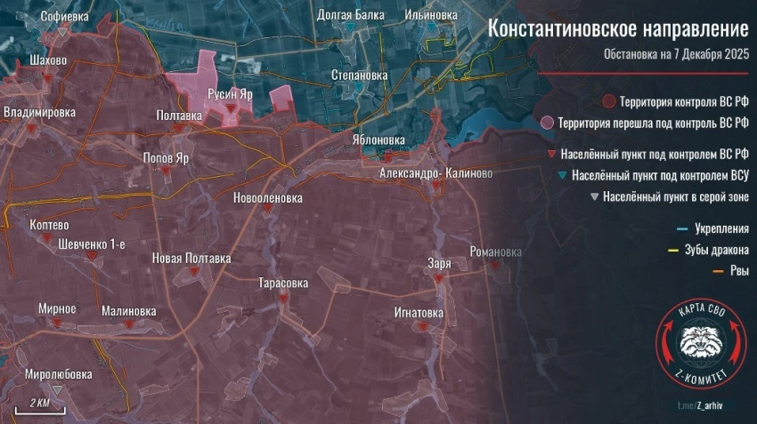 Главные новости » Эксклюзив » ВС РФ окружают Северск с двух сторон, карта боевых действий в зоне СВО на утро 08.12.2025
